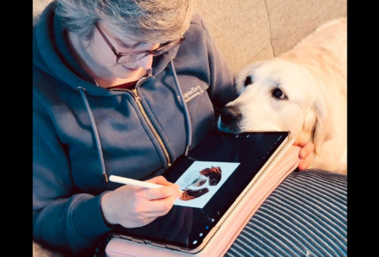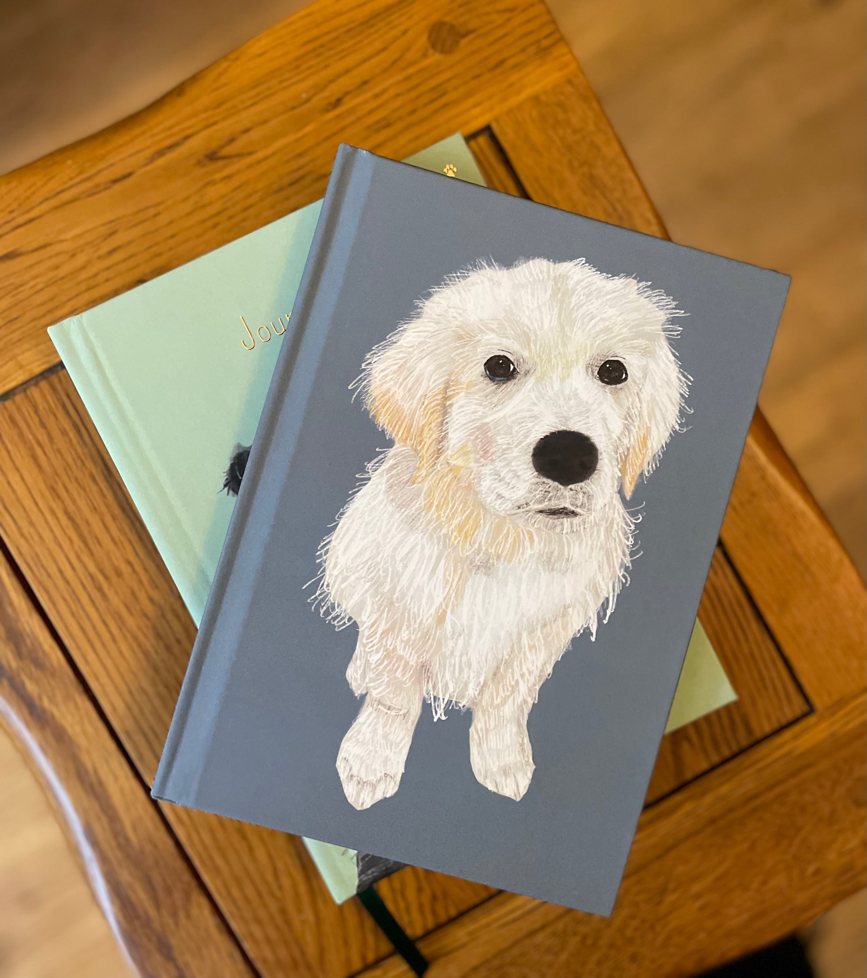 I create bespoke books and journals for pet lovers from my little nook in the Midlands – with help from my dogs, Fox and Snow!